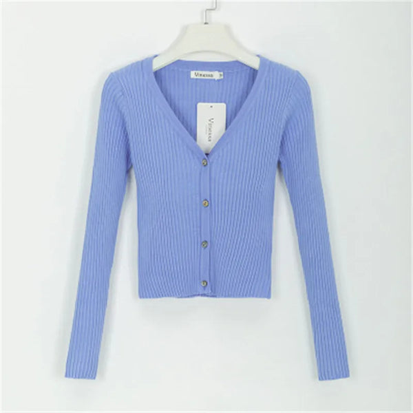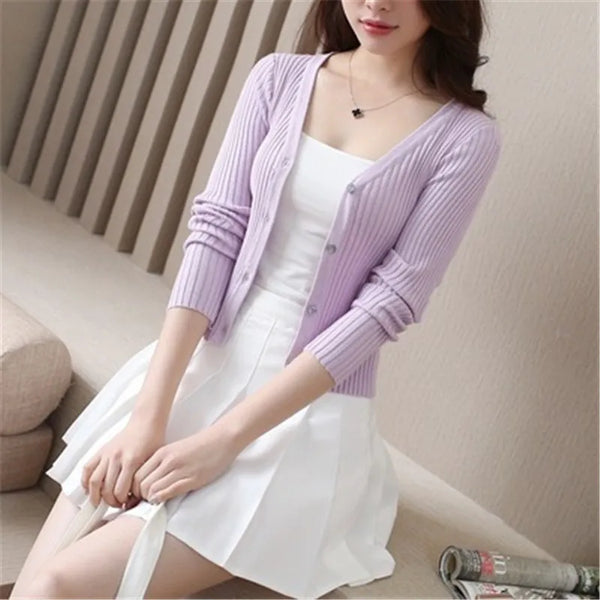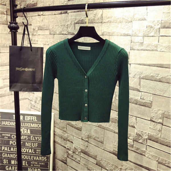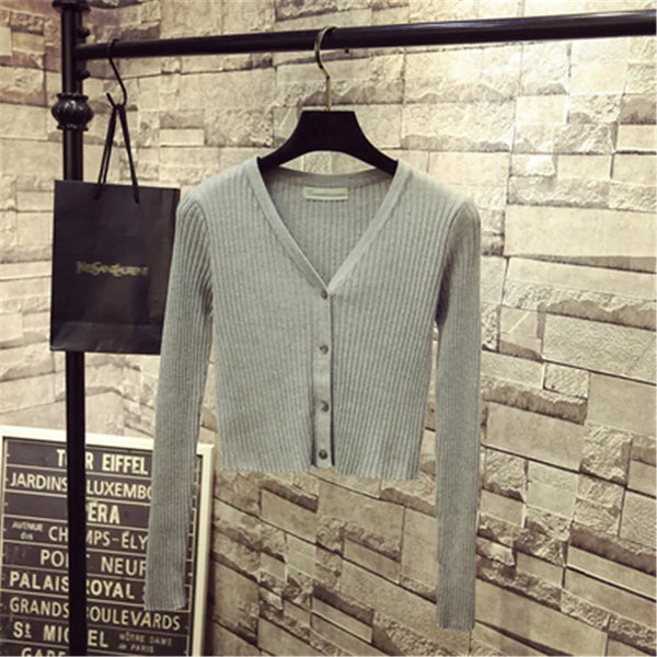 2019 Women Slim V Neck Knitted Cardigan Long Sleeve Cropped Cardigan Sweaters Ladies Solid Women Short Cardigans Candy PZ1540