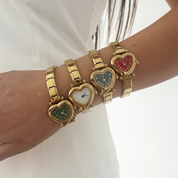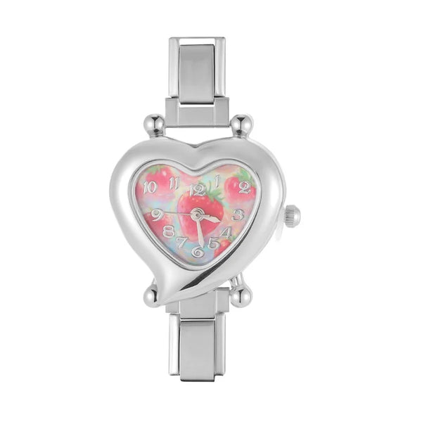 Men Women's High Quality DIY 9MM Width Italian Elastic Charm Stainless Heart Shape Watch Bracelet Bangle For Party Birthday Gift