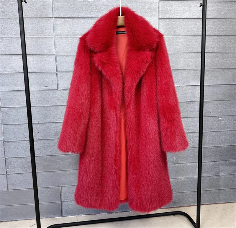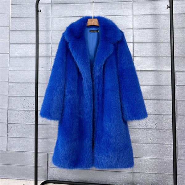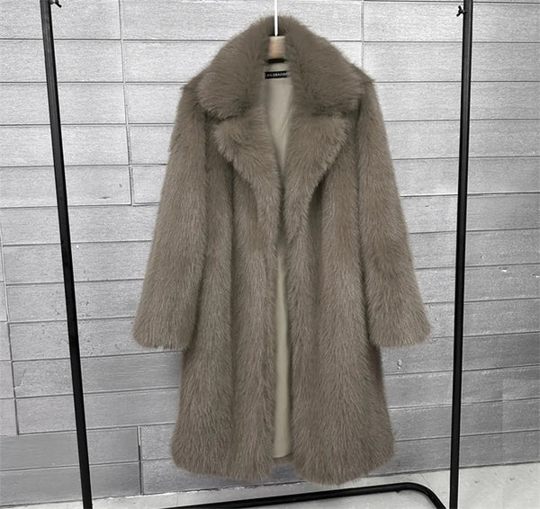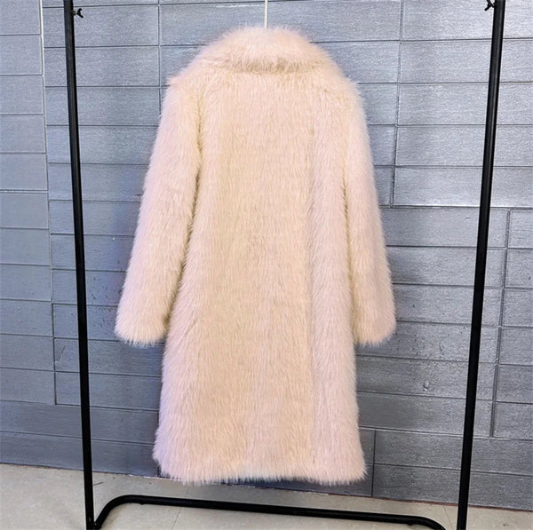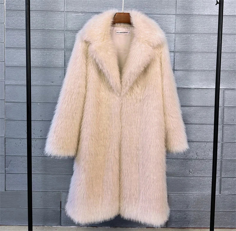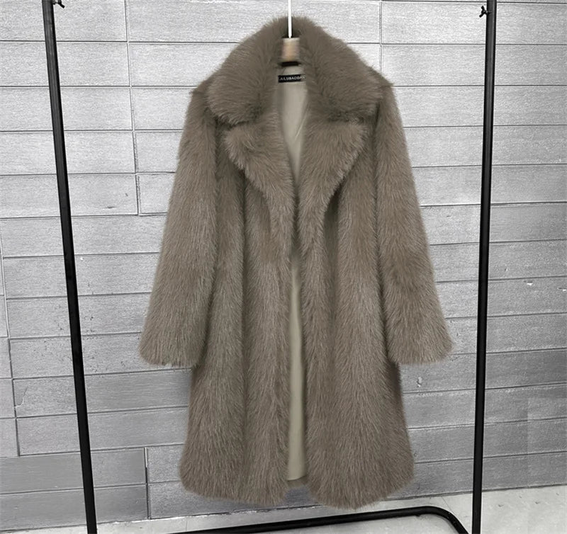 2025 Streetwear Fur Coat Women's Long Overcoat Autumn Winter Hooded Faux Toka Fur Outerwear Lady Turndown Collar Thicken Jackets