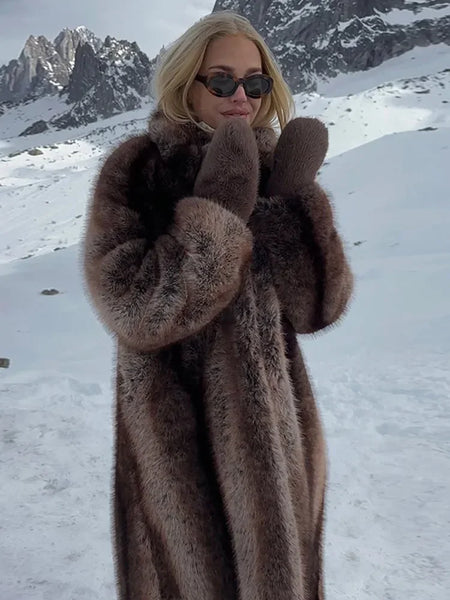 Women Faux Fur Overcoat Luxury Chic Fashion Lapel Long Sleeve Loose Fluffy Coat Lady Winter Warm Elegant Street Outerwear New