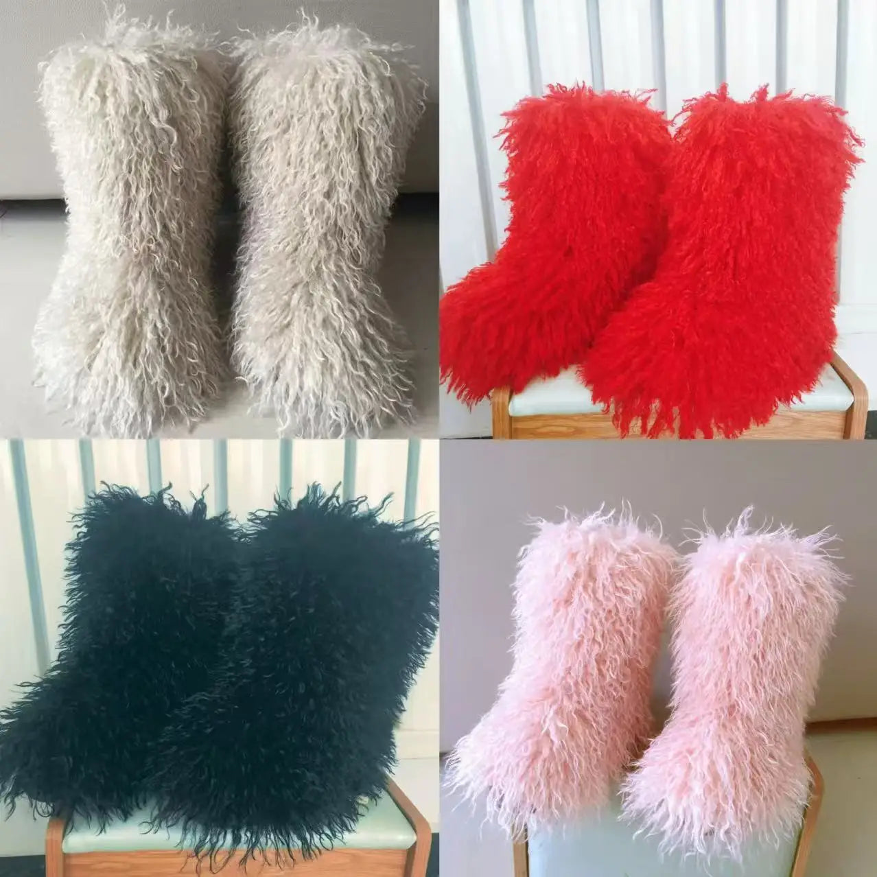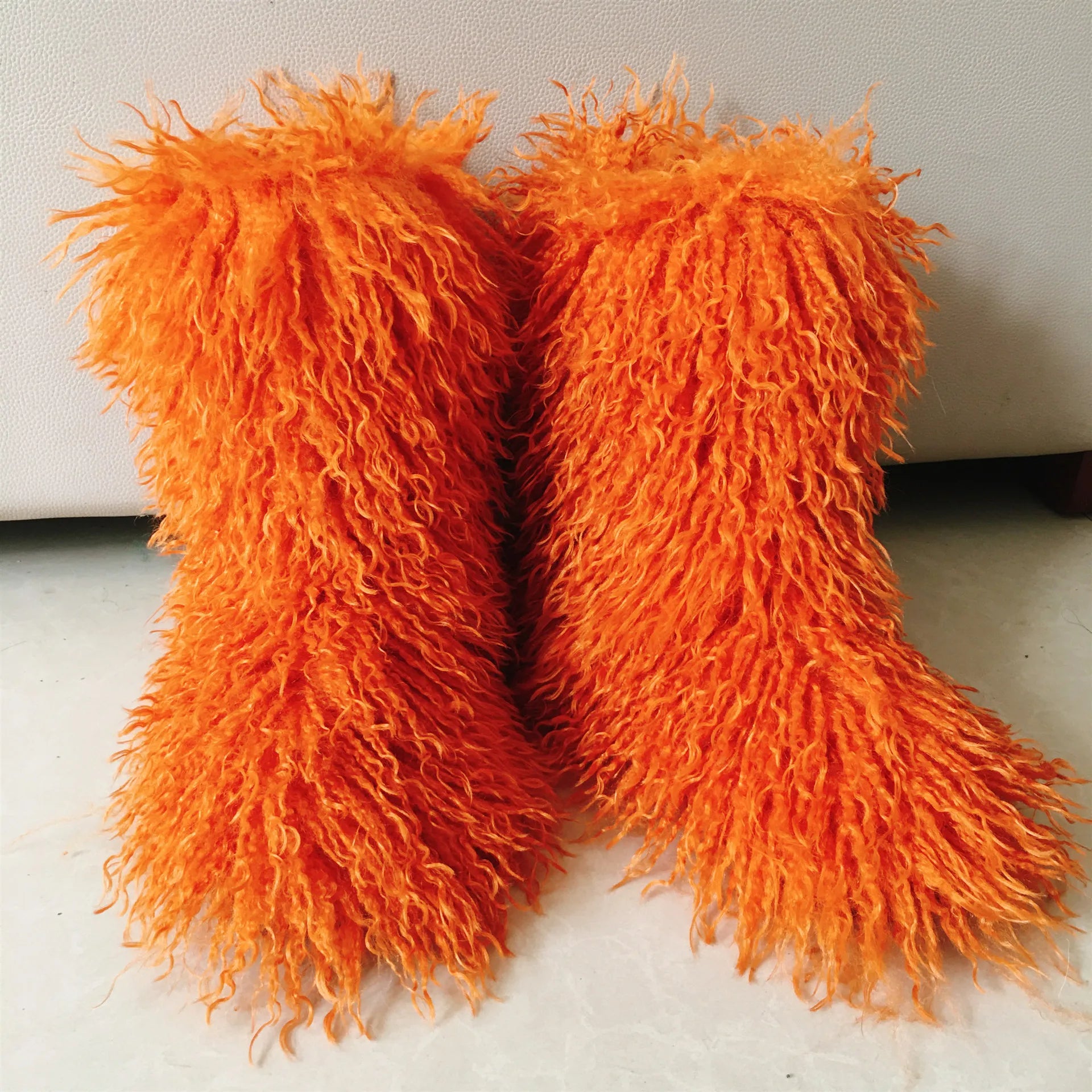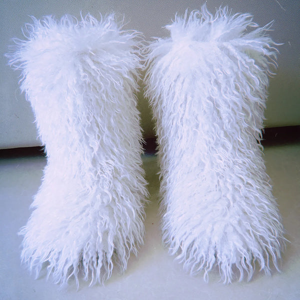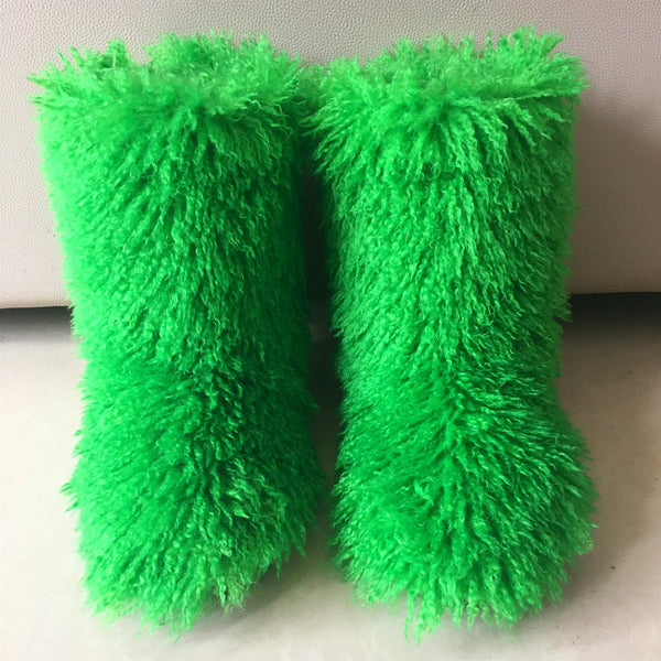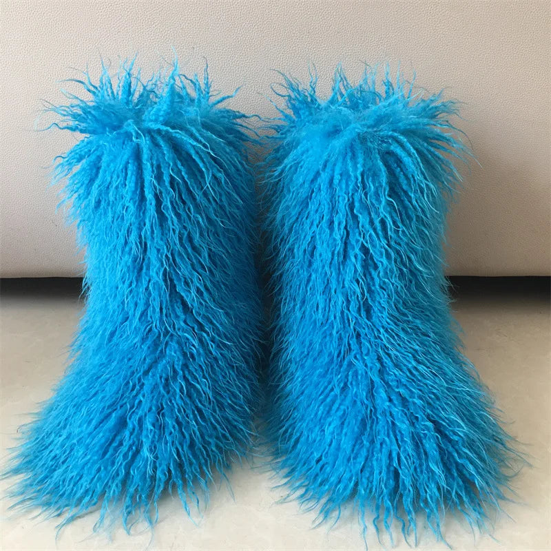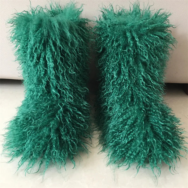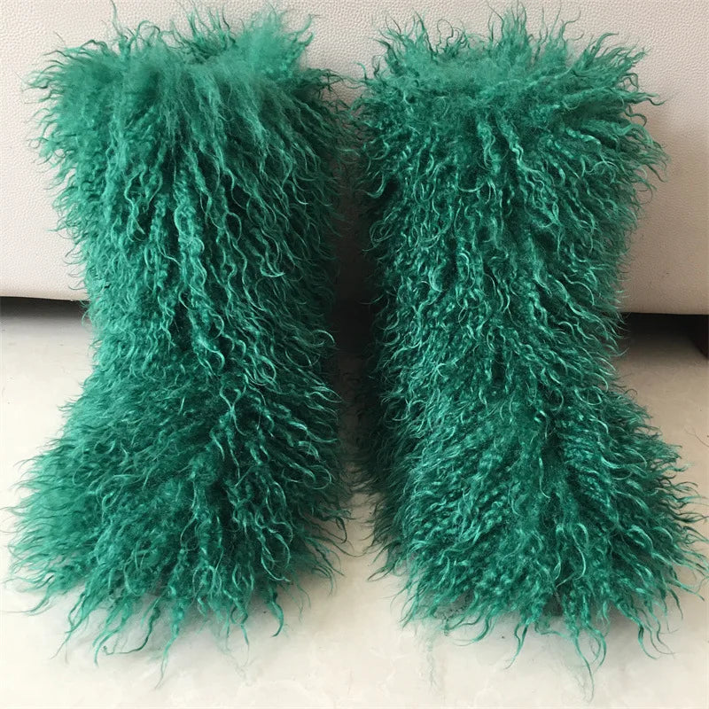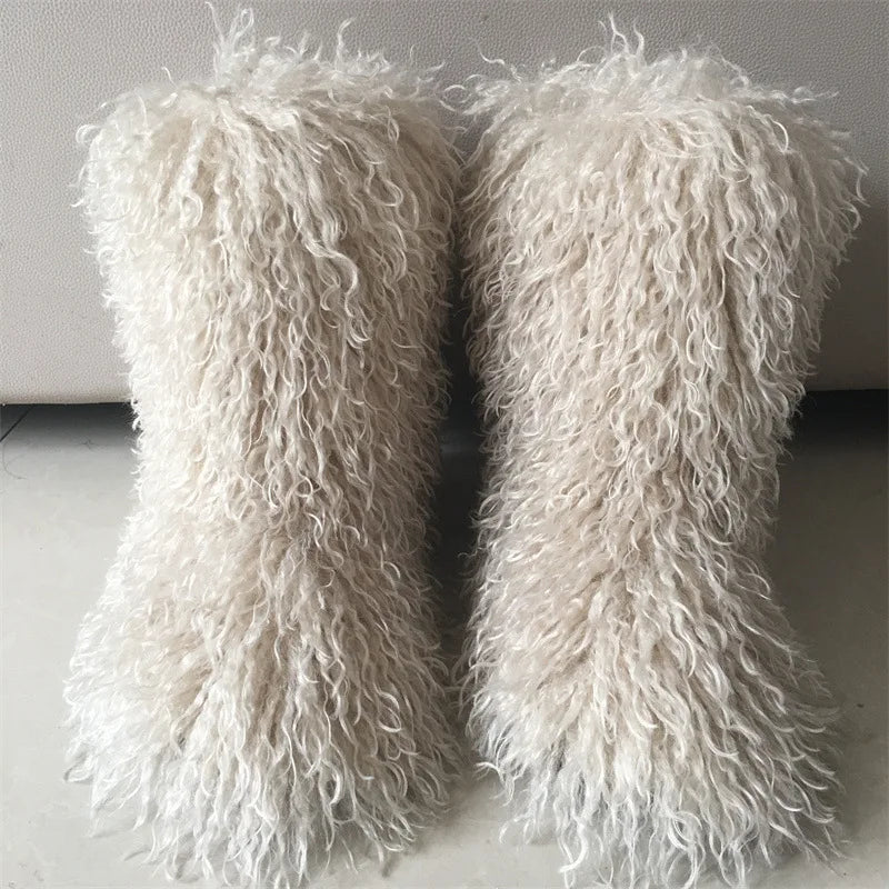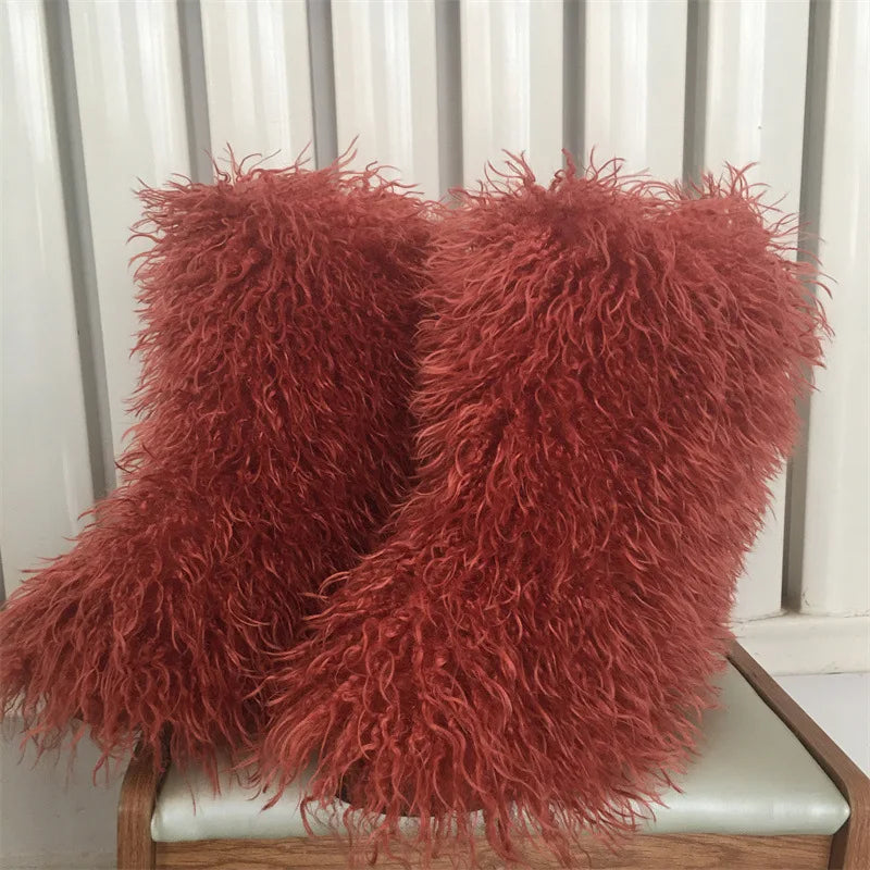 2026 Fashion Winter Lamb Skin Boots Long Hair Faux Mongolian Sheep Fur Boots Cover