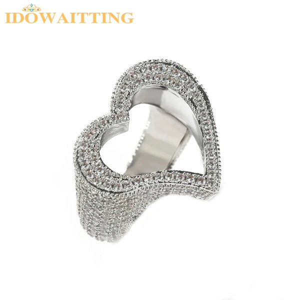 Full Micro Paved CZ Hollow Heart Ring High Quality Iced Out Bling Cubic Zirconia For Women Girlfriend Valentines Finger Jewelry