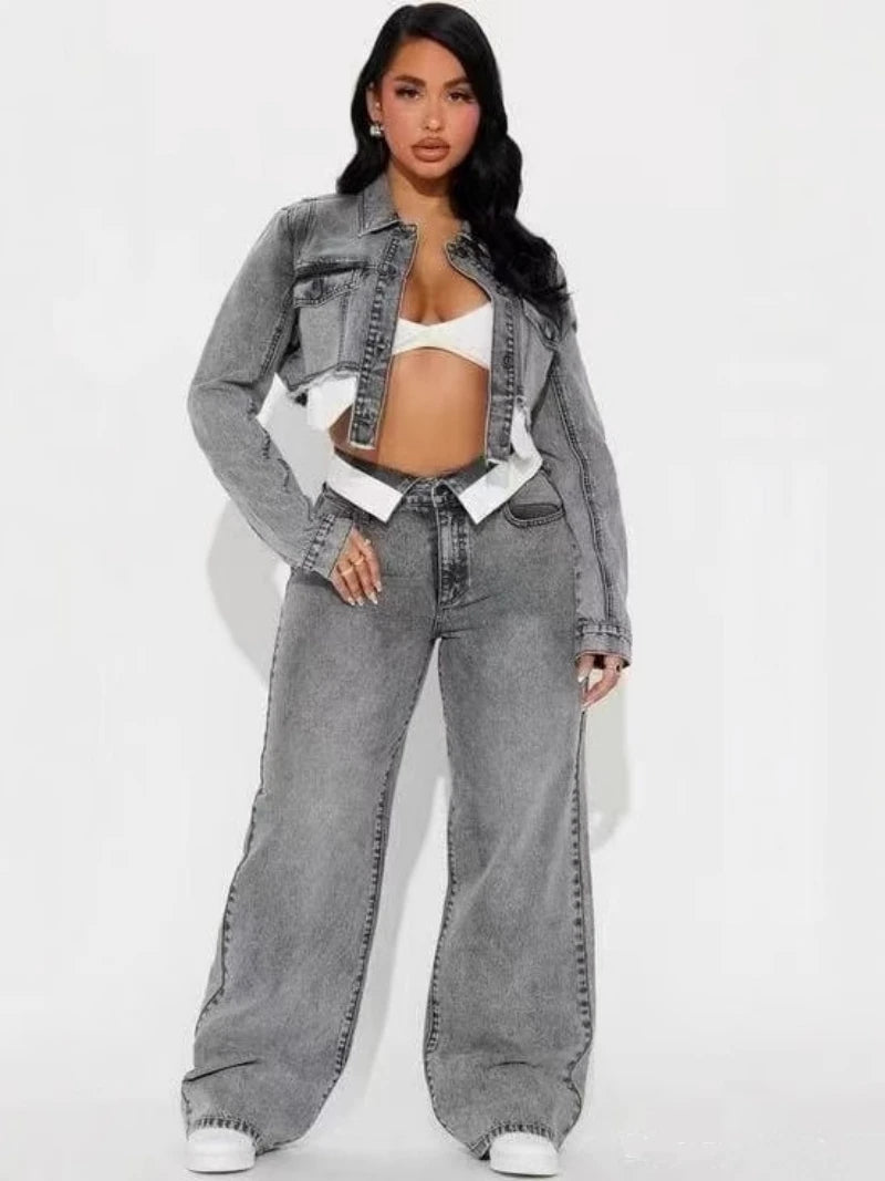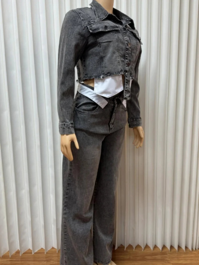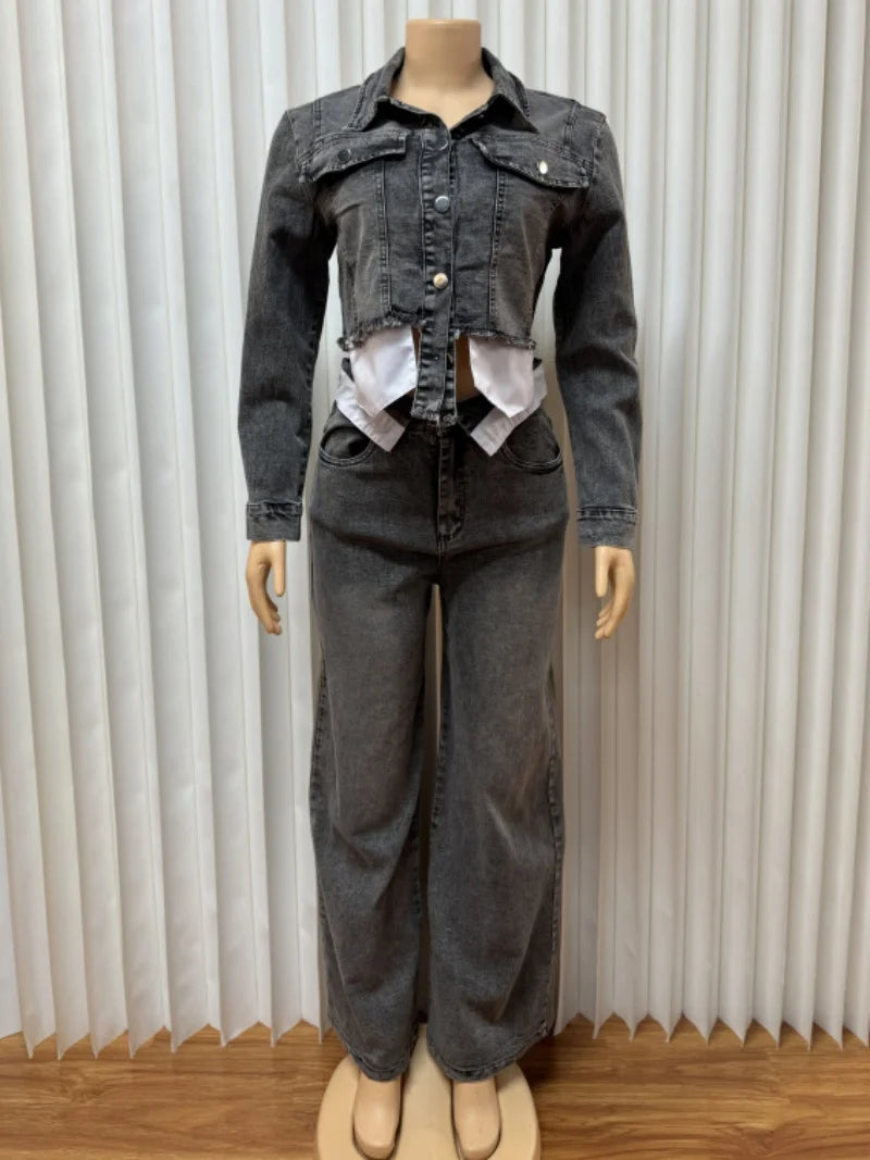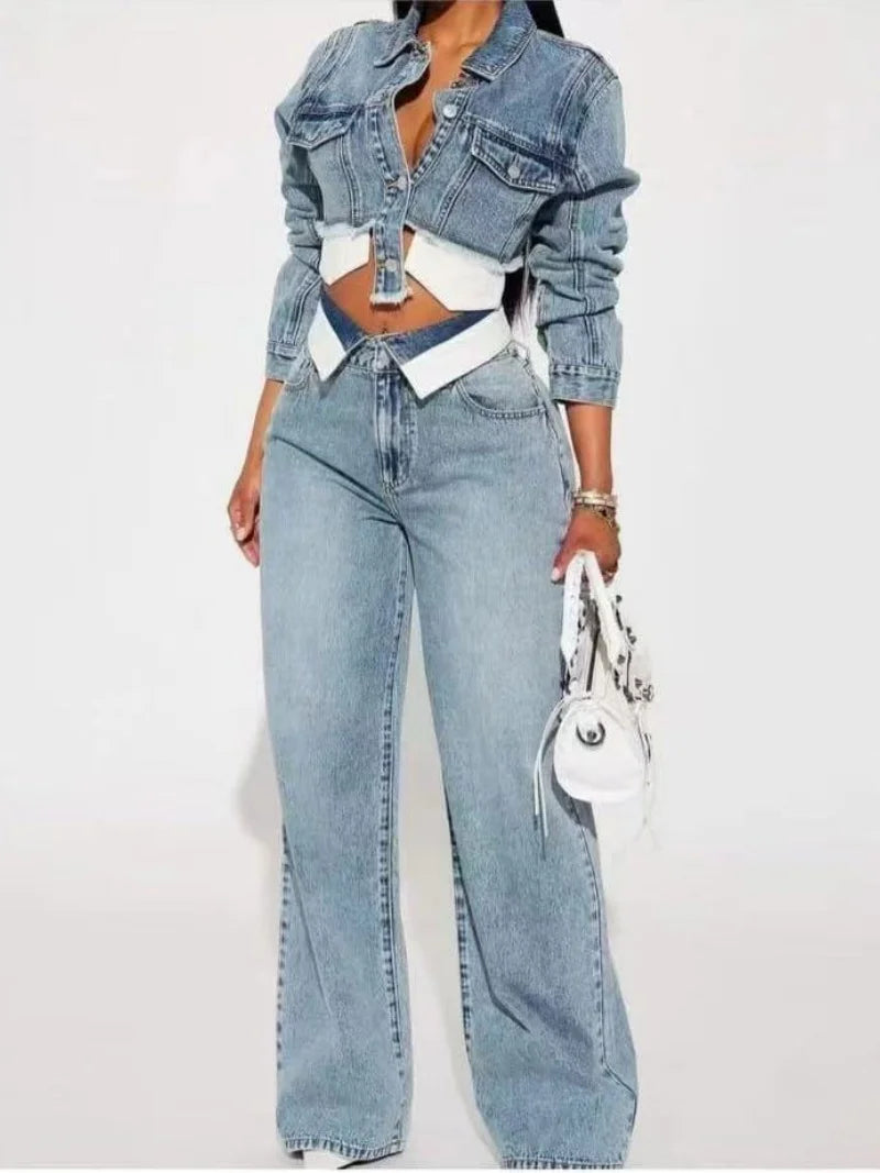 Model Number: Streetwear Denim 2 Piece Sets Women Outfit Autumn Clothes Women