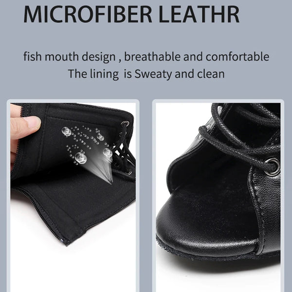 Woman Beige Black Latin Dance Booties Women Open Toe Lace Up Stiletto Bootie for Girls Suede Sole High Heel Dance Boots Shoes